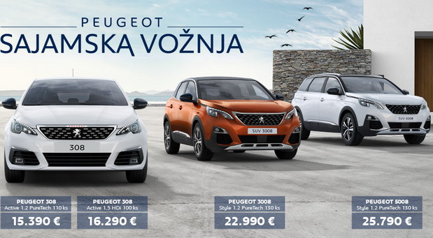 Tako Peugeot 308 Active 1.2 PureTech sa 110KS košta 15.390 evra, Peugeot 308 Active 1.5 HDi sa 100KS ima cenu od 16.290 evra, Peugeot 3008 Style 1.2 PureTech sa 130KS se nudi za 22.990 evra, dok Peugeot 5008 Style 1.2 PureTech sa 130KS košta 25.790 evra.